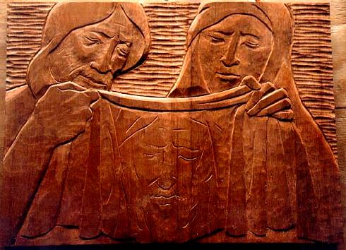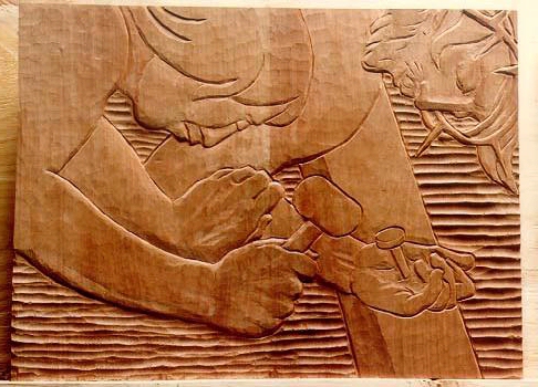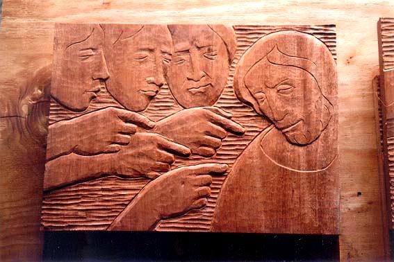 Low relief carvings in mahogany, Incarnate Word Church, Chesterfield, Missouri.